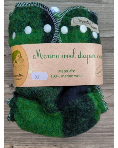 Merino wool diapers cover XL size, checkered green/brown merino wool