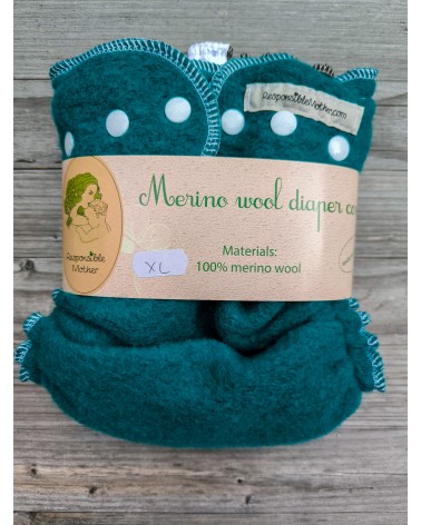 Merino wool diapers cover XL size, turquoise/brown merino wool