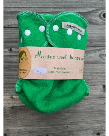 Merino wool diapers cover XL size, apple green/brown merino wool