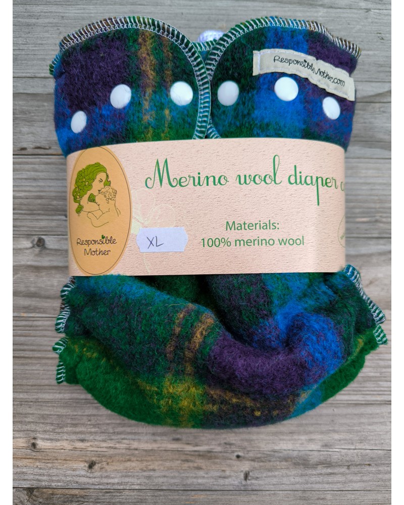 Merino wool diapers cover XL size, checkered green/brown merino wool