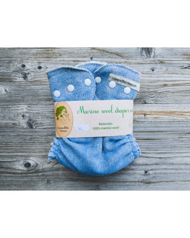 Merino wool diapers cover XL size, light blue/gray merino wool